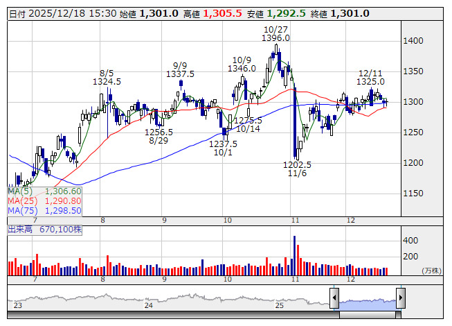 帝人 <日足> 「株探」多機能チャートより■財務省 : 12月18日受付
