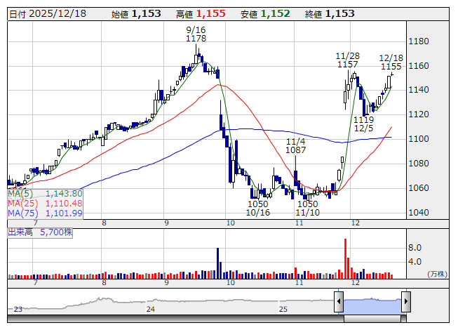 フジ日本 <日足> 「株探」多機能チャートより12月18日引け後に、株主優待制度について発表した銘柄を取り上げた。