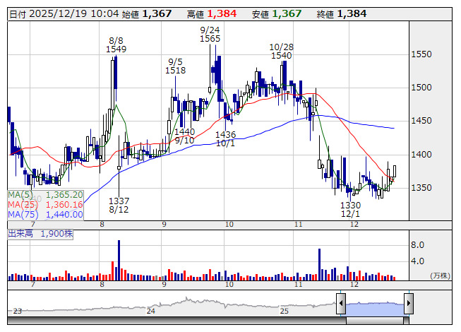 ナガオカ <日足> 「株探」多機能チャートよりスクリーン・インターナルは、石油精製・石油化学・肥料プラントの心臓部で反応・抽出・分離などの工程に使用される内部装置のこと。同社が以前に納入した中東のプロピレンプラントにおいて設備更新需要があり、納入実績のある同社製品が採用された。受注金額は約6億円で、納期は26年12月。なお、26年6月期業績予想には織り込み済みとしている。