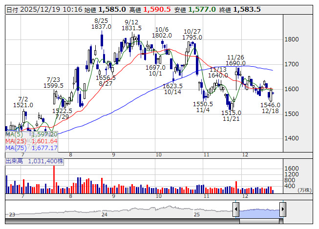 住友林 <日足> 「株探」多機能チャートより■財務省 : 12月19日受付