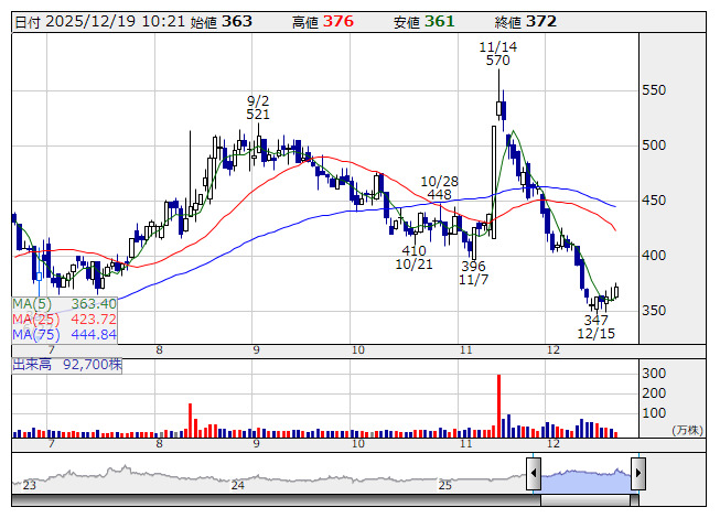スマートD <日足> 「株探」多機能チャートより■財務省 : 12月19日受付