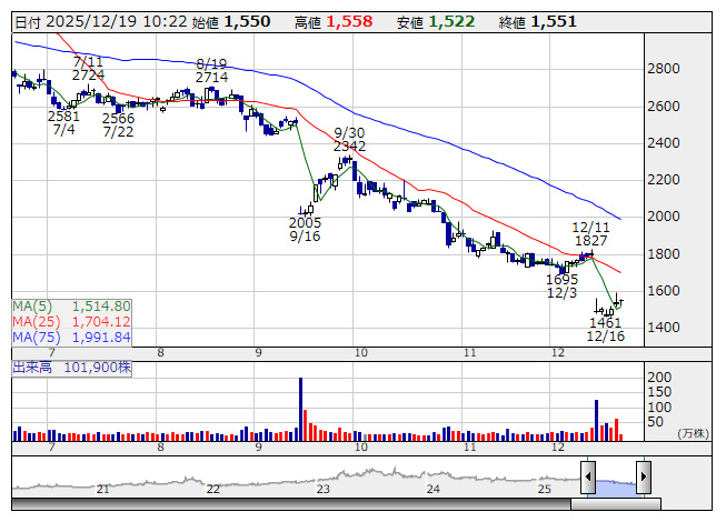 マクビープラ <日足> 「株探」多機能チャートより■財務省 : 12月19日受付