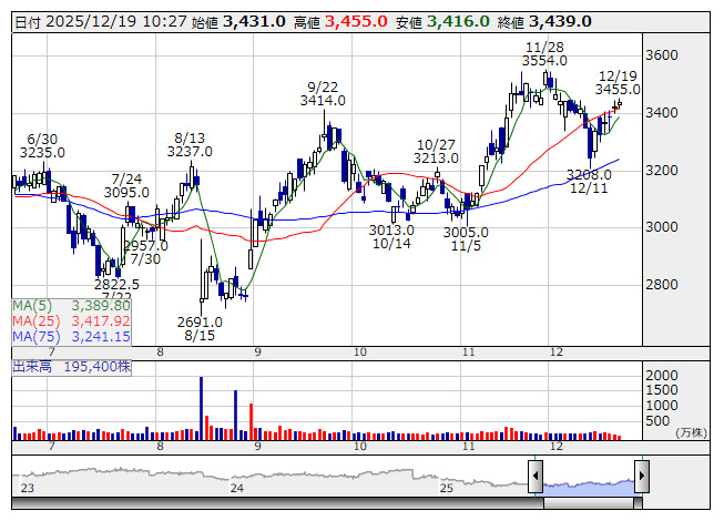 電通グループ <日足> 「株探」多機能チャートより■財務省 : 12月19日受付
