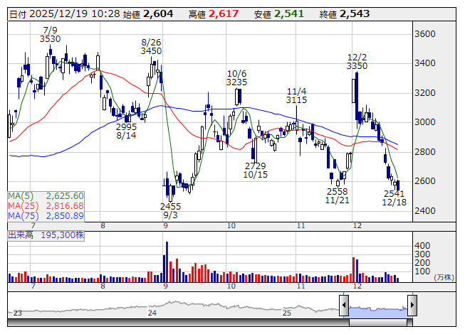トリケミカル <日足> 「株探」多機能チャートより■財務省 : 12月19日受付