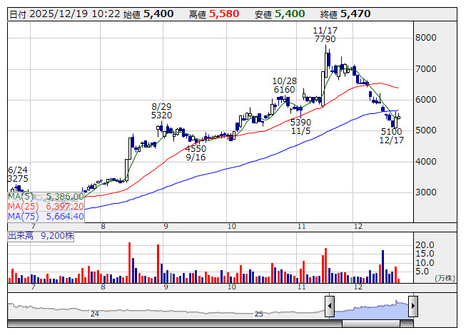 エアロエッジ <日足> 「株探」多機能チャートより■財務省 : 12月19日受付