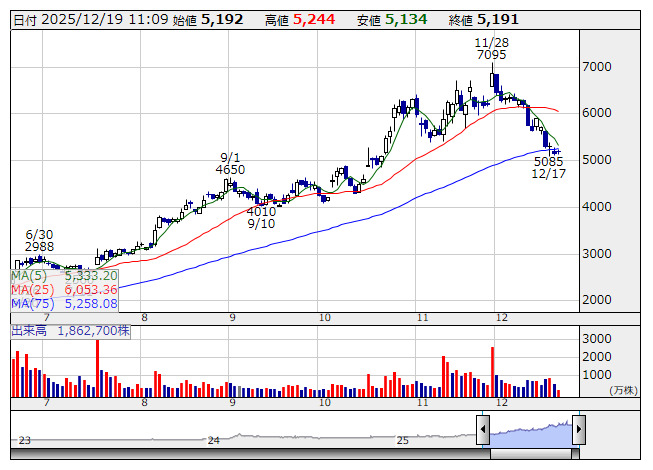 三井E&S <日足> 「株探」多機能チャートより■財務省 : 12月19日受付