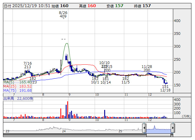 Jエスコム <日足> 「株探」多機能チャートより■財務省 : 12月19日受付