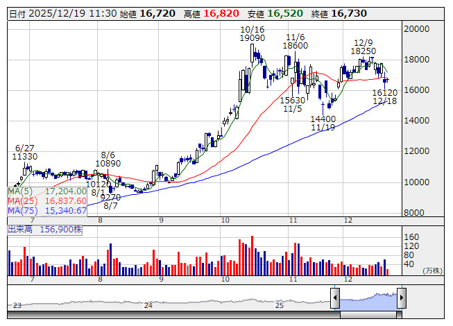 芝浦 <日足> 「株探」多機能チャートより■財務省 : 12月19日受付
