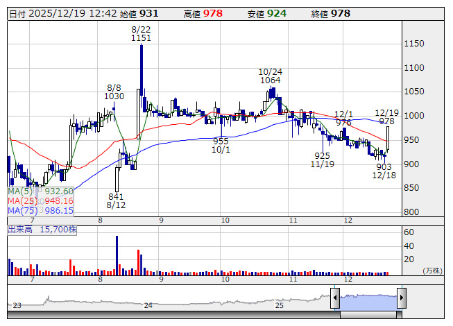 2025年12月19日12時42分 【材料】アイビーシーが4日ぶり急反発、光通信の買い増しで思惑 アイビーシー <日足> 「株探」多機能チャートより アイビーシー<3920>が4日ぶりに急反発している。光通信<9435>傘下の光通信が18日の取引終了後に関東財務局へ提出した変更報告書のなかで、共同保有による株式保有比率が7.29%から8.30%に上昇したと判明しており、思惑視した買いが集まっている。報告義務発生日は12月11日。保有目的は「純投資」としている。 出所:MINKABU PRESS