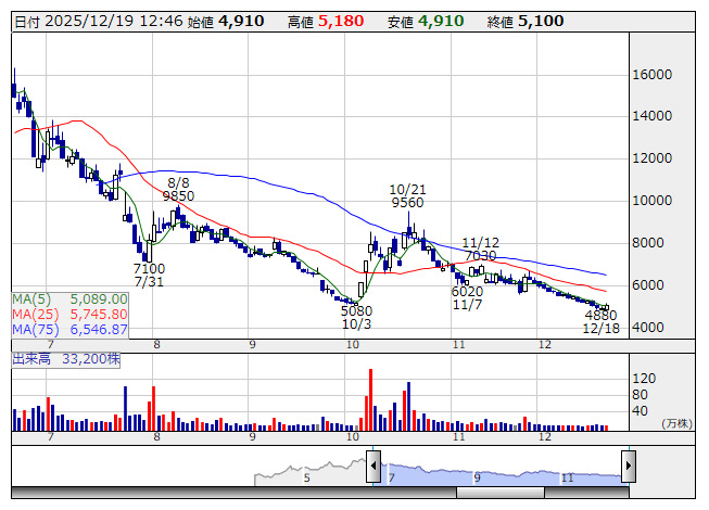 ゼンムテック <日足> 「株探」多機能チャートより■財務省 : 12月19日受付