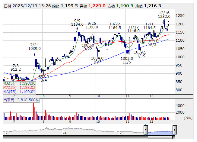 マツダ <日足> 「株探」多機能チャートより■財務省 : 12月19日受付