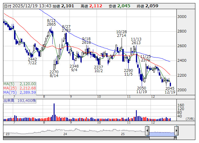 インフォR <日足> 「株探」多機能チャートより■財務省 : 12月19日受付
