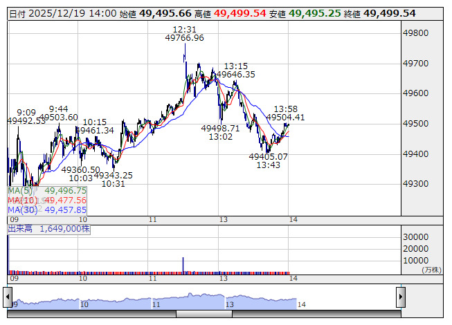 【市況】14時の日経平均は493円高の4万9495円、SBGが199.55円押し上げ