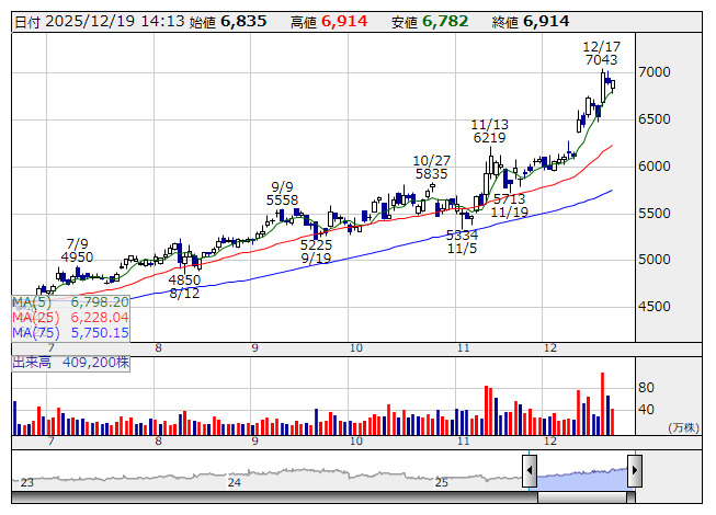 DOWA <日足> 「株探」多機能チャートより■財務省 : 12月19日受付