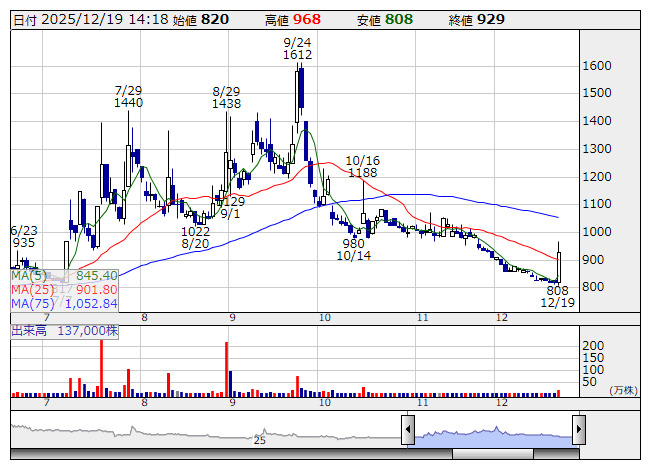 2025年12月19日14時18分 【材料】ウィルスマは急動意、新事業開始を材料視 ウィルスマ <日足> 「株探」多機能チャートより Will Smart<175A>は急動意。この日午後2時ごろ、新たな事業を開始すると発表した。ドライバー不足のなかで物流インフラを支えるため、国内の中小トラック運送事業者における低コストで高機能なデジタル式運行記録計の需要に対応し、OBD2型デジタル式運行記録計の販売事業を始めるという。これが買い材料視されている。 出所:MINKABU PRESS
