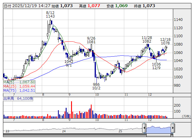 TOKAI <日足> 「株探」多機能チャートよりTOKAIホールディングス<3167>は18日、グループ会社のTOKAIケーブルネットワークが運営するシェアサイクルサービス「PULCLE」において、ファミリーマートおよび静岡ダイハツ販売と連携し、「複合モビリティ拠点」を静岡市内に新設すると発表した。