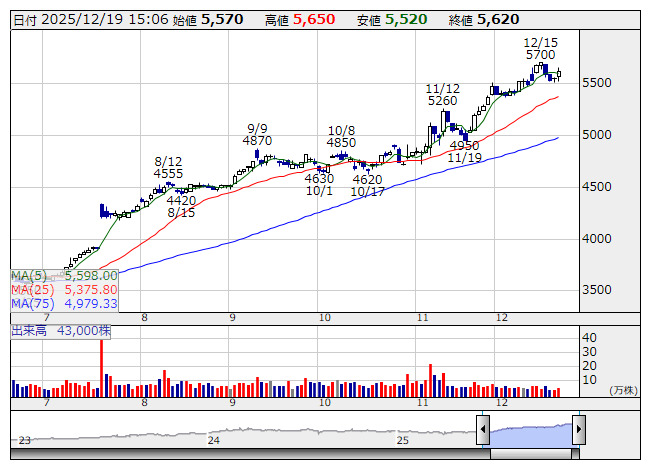 2025年12月19日15時07分 【材料】ノリタケが上げ幅を拡大、3月31日を基準日として1株を2株に株式分割へ ノリタケ <日足> 「株探」多機能チャートより ノリタケ<5331>が後場終盤に上げ幅を拡大している。午後3時ごろ、26年3月31日を基準日として1株を2株に株式分割すると発表したことが好感されている。投資単位当たりの金額を引き下げることで、株式の流動性の向上と投資家層の拡大を図ることが目的という。 出所:MINKABU PRESS