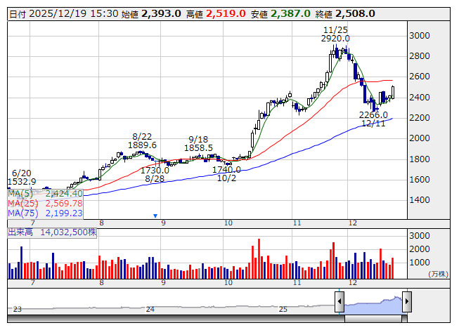 <6254> 野村マイクロ 2609 +41 ( +1.6%)