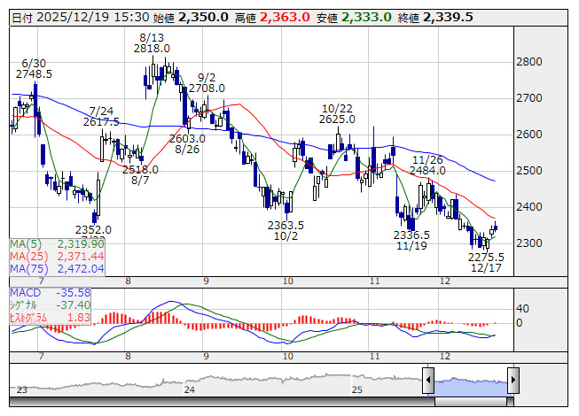 <4543> テルモ 2339.5 -0.5 ( -0.0%) -35.6
