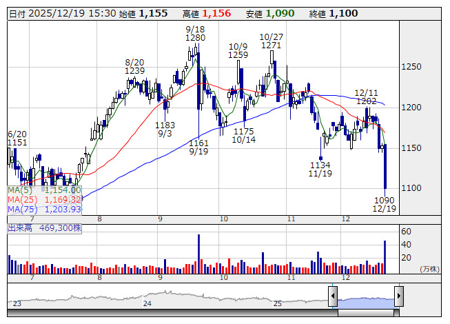 ワンダープラネット<4199>が急動意。同社は10月3日にブシロード<7803>とともに、共同開発の新作モバイルゲーム「HUNTER×HUNTER NEN×SURVIVOR(ネンサバ)」の発表を行い、2026年の世界同時配信に向け開発を進める方針を明らかにしていたが、12月18日夜にネンサバの公式Xを通じ、同月19日の日付とともに、重大発表を続々公開する予定だと告知された。英語の公式Xでも同様の告知があった。更にApp Storeではネンサバについて、2026年2月18日リリース予定だとの表示がある。これらが刺激材料となり、短期資金の流入を誘発したとみられている。