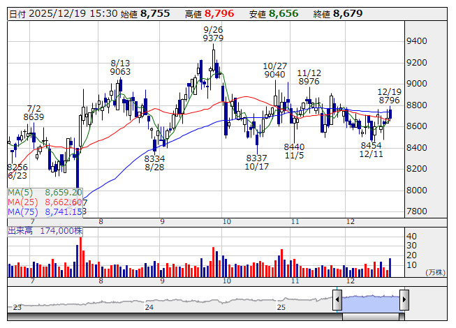 OBC <日足> 「株探」多機能チャートより■財務省 : 12月19日受付
