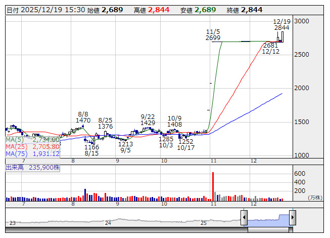 ブレインP <日足> 「株探」多機能チャートより■財務省 : 12月19日受付