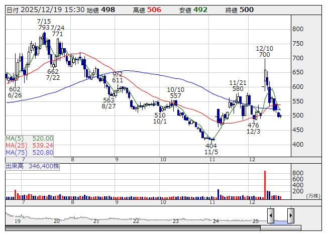 デルタフライ <日足> 「株探」多機能チャートより■財務省 : 12月19日受付