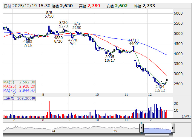 Arent <日足> 「株探」多機能チャートより■財務省 : 12月19日受付