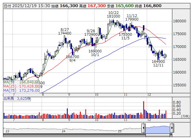 阪急阪神R <日足> 「株探」多機能チャートより■財務省 : 12月19日受付