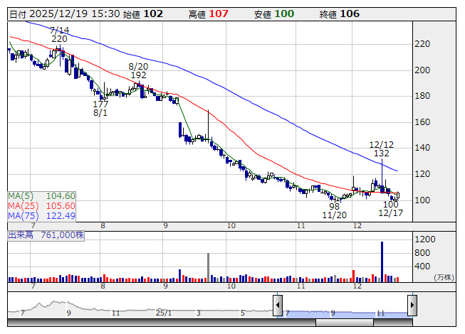 コーディア <日足> 「株探」多機能チャートより■財務省 : 12月19日受付