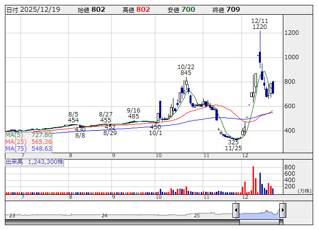ヒーハイスト <日足> 「株探」多機能チャートより―――――――――――――――――――12月15日 (月) 発表分――