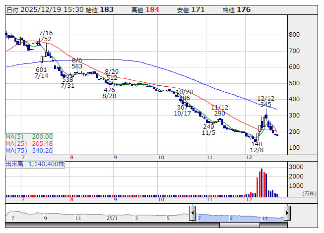 2025年12月22日05時40分 【注目】本日の【信用規制・解除】銘柄 (19日大引け後 発表分) ポスプラ <日足> 「株探」多機能チャートより ○ポスプラ <198A> [東証G] 東証が22日売買分から信用取引の臨時措置(委託保証金率を50%以上[うち現金20%以上]とする)を解除する。日証金も増担保金徴収措置を解除。 [2025年12月22日] 株探ニュース