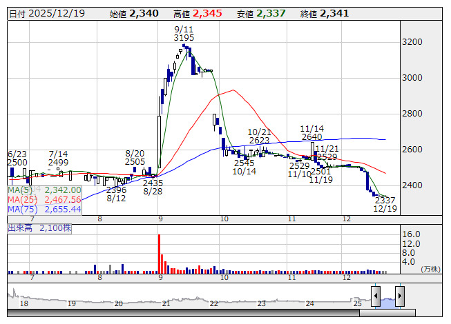 発行済み株式数(自社株を除く)の23.95%にあたる25万株(金額で5億8525万円)を上限に、12月22日朝の東証の自己株式立会外買付取引「ToSTNeT-3」で自社株買いを実施する。また、今回取得した全株と保有している自己株の一部を消却する。消却予定日は26年1月30日。
