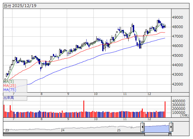 米国株式市場は続伸。ダウ平均は183.04ドル高の48134.89ドル、ナスダックは301.2