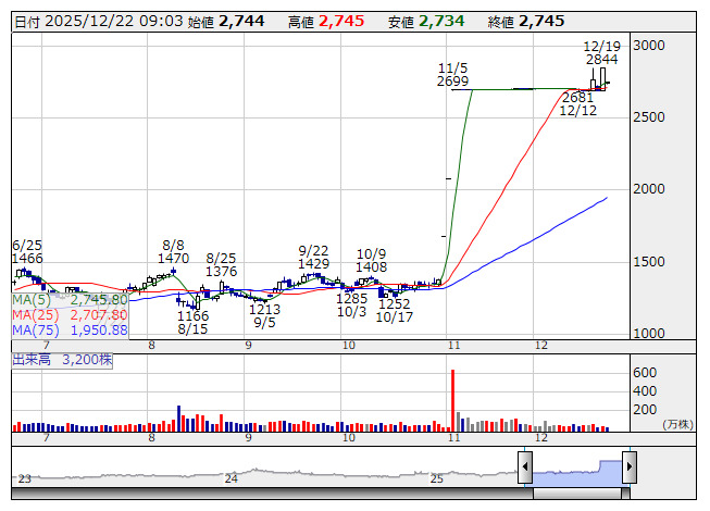 ブレインP <日足> 「株探」多機能チャートより■財務省 : 12月22日受付