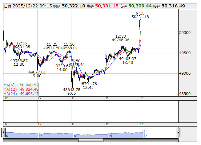 日経平均 <5分足> 売買代金 「株探」多機能チャートより個別ではiシェアーズ 米国債0-3ヶ月 ETF <2012> 、MAXIS全世界株式(オール・カントリー) <2559> 、上場インデックスファンド海外先進国株式 <1680> 、SPDR S&P500 ETF <1557> 、純銀上場信託(現物国内保管型) <1542> など51銘柄が新高値。iシェアーズ ドイツ国債 ETF(為替ヘッジあり) <2857> 、iシェアーズ 日本国債7-10年 ETF <236A> 、NEXT FUNDS 国内債券・NOMURA <2510> 、NEXT NOTES 金先物 ベア ETN <2037> 、iシェアーズ 円高フォーカスETF <488A> など10銘柄が新安値をつけている。