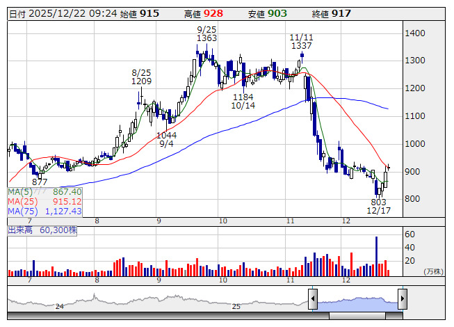 2025年12月22日09時24分 【材料】ネットスタズは4日続伸、子会社設立し新事業開始へ ネットスタズ <日足> 「株探」多機能チャートより ネットスターズ<5590>は4日続伸。前週末19日取引終了後、子会社を設立し、新たな事業を開始すると発表した。エンターテインメント向けオンライン決済サービスやゲームプラットフォームの運営、パブリッシングなどを行う。会社設立日は来年1月26日、事業開始日は同1月下旬の予定。これが手掛かりとなっているようだ。 出所:MINKABU PRESS