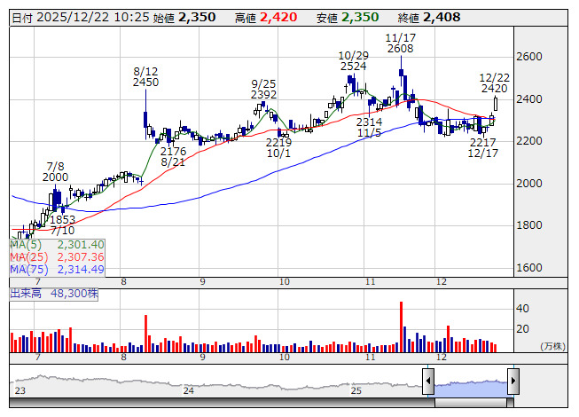 NITTOK <日足> 「株探」多機能チャートより■財務省 : 12月22日受付