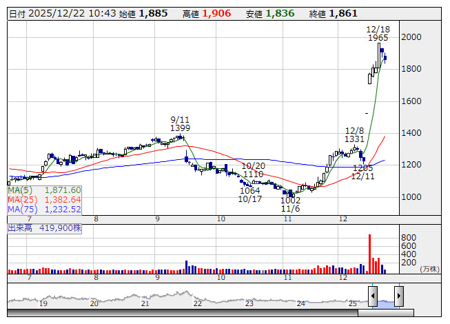 ラクスル <日足> 「株探」多機能チャートより■財務省 : 12月22日受付