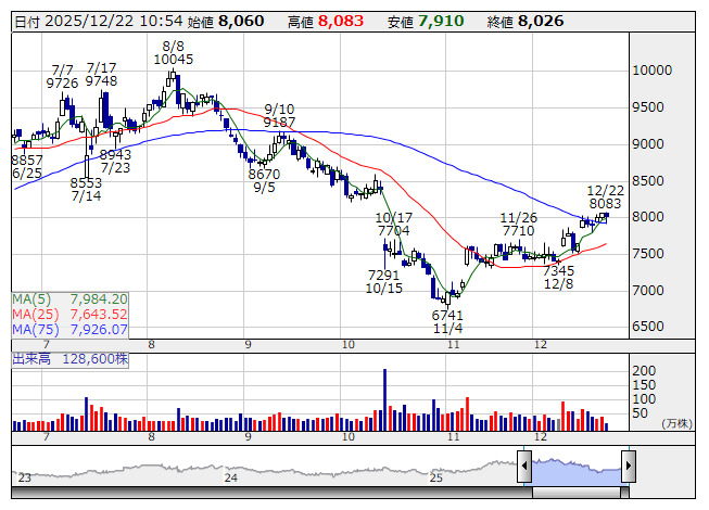 コスモス薬品 <日足> 「株探」多機能チャートより■財務省 : 12月22日受付