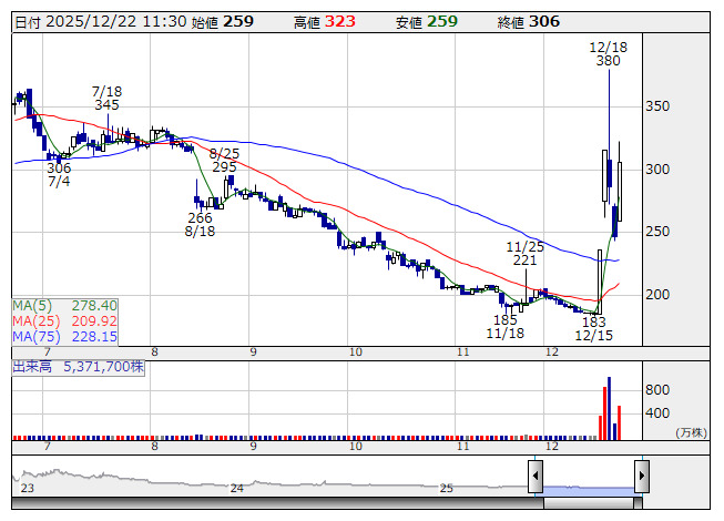 ※12月22日寄付値に対する前場終値の株価上昇率