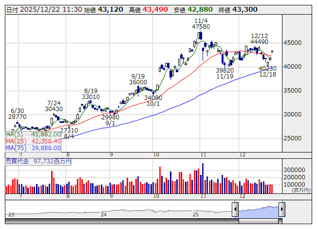 41. <2569> 上場NQヘ有 437 -25.4 3797