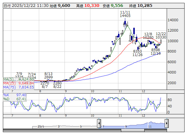 銘柄名 株価 前日比 (比率) 25日移動平均