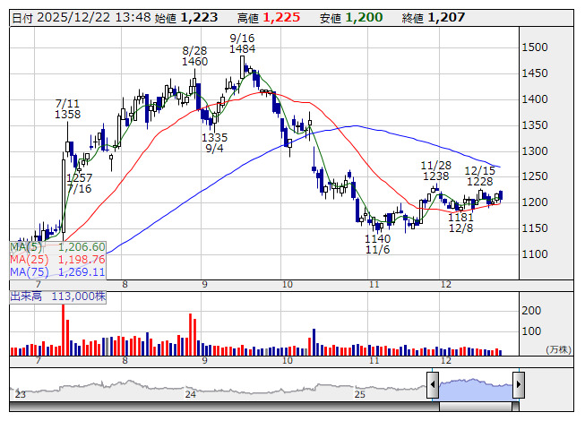 コシダカHD <日足> 「株探」多機能チャートより■財務省 : 12月22日受付