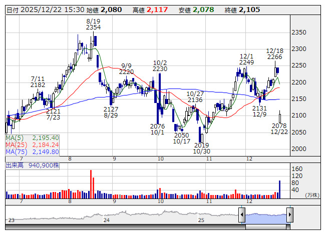 2025年12月22日16時42分 【材料】西松屋チェの12月度既存店売上高は2カ月ぶり前年下回る 西松屋チェ <日足> 「株探」多機能チャートより 西松屋チェーン<7545>がこの日の取引終了後、12月度(11月21日~12月20日)の月次売上高速報を発表しており、既存店売上高は前年同月比3.3%減と2カ月ぶりに前年実績を下回った。 育児・服飾雑貨の売上高は好調に推移した一方、冬物衣料の売上高が前年を下回った。なお、全店売上高は同1.3%増だった。 出所:MINKABU PRESS