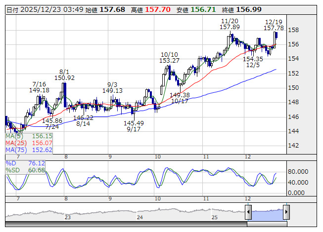 入札不調で、米国債相場は続落。10年債利回りは4.17%まで上昇した。ドル売りは一服し、ドル・円は156円71銭の安値から156円99銭まで上昇。ユーロ・ドルは1.1741ドルから1.1769ドルまで上昇後も1.1751ドルで高止まり。ポンド・ドルは1.3430ドルから1.3477ドルまで上昇し7日来の高値を更新した。