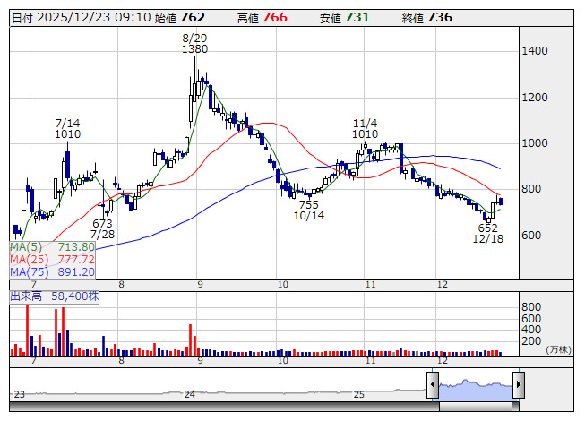 イクヨ <日足> 「株探」多機能チャートより