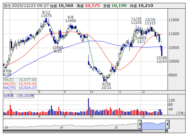 しまむら <日足> 「株探」多機能チャートより―決算で売られた銘柄! 下落率ランキング―