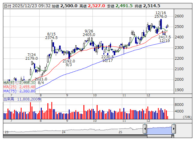 4519 (CHGCY) 中外製薬 26.30 -0.19 8254 -