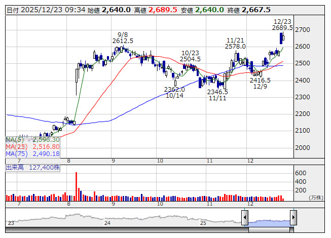 2025年12月23日09時33分 【材料】ロートは5日続伸、株主優待を拡充 ロート <日足> 「株探」多機能チャートより ロート製薬<4527>は5日続伸。22日取引終了後、26年3月期分から株主優待制度を拡充すると発表した。100株以上保有する株主を対象に、保有状況に合わせてココロートパークのポイント付与や製品詰め合わせの還元率を高めるという。これが好感されている。 出所:MINKABU PRESS